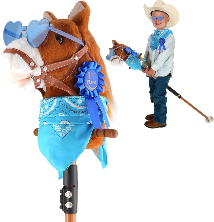 - STICK HORSE: The classic appeal of a stick horse! This colorful purple & white, soft stick horse will encourage imaginative play, transporting kids to an exciting world of thrilling adventures in the land of the wild.